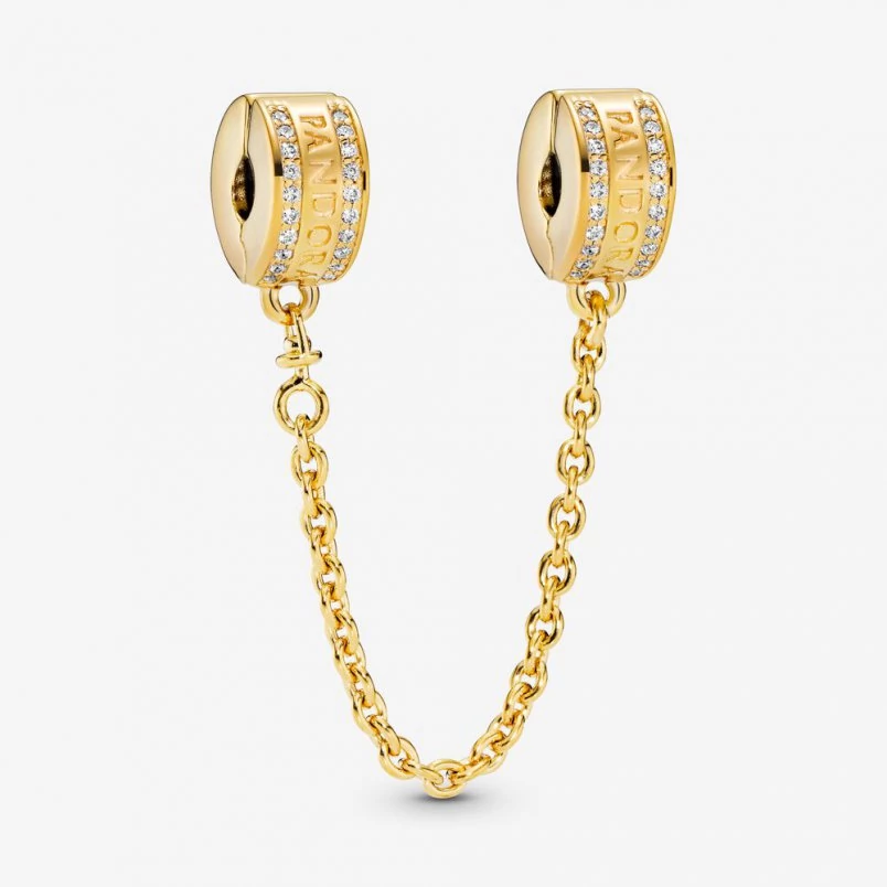 Pandora Shine biztonsági lánc, 80 csillogó peremes foglalású, áttetsző cirkóniával és szilikonbetéttel, hogy még biztonságosabb legyen az ékszerviselés.