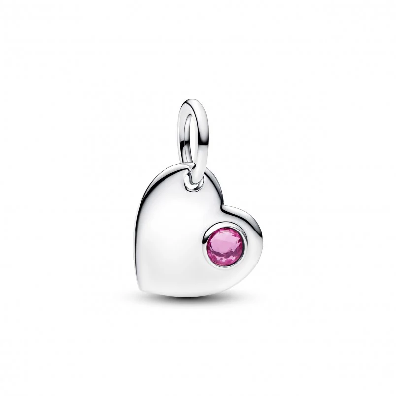 Ne félj megmutatni, mit rejt a szíved – szó szerint! Ez a sterling ezüst függő charm egy rózsaszín mesterséges kristállyal és gravírozható hátoldallal rendelkezik – készen arra, hogy a legjelentőségteljesebb szavaidat ho