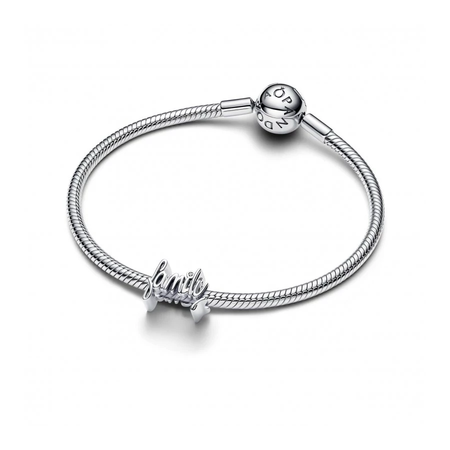 Ragyogó emlékeztető arra, ami a legfontosabb. Ez a sterling ezüst charm kézzel írt „family” felirattal és az „i” felett négyszögletes cirkónia ponttal díszített. A mesterien megmunkált ékszer minden történet szíve-lelke