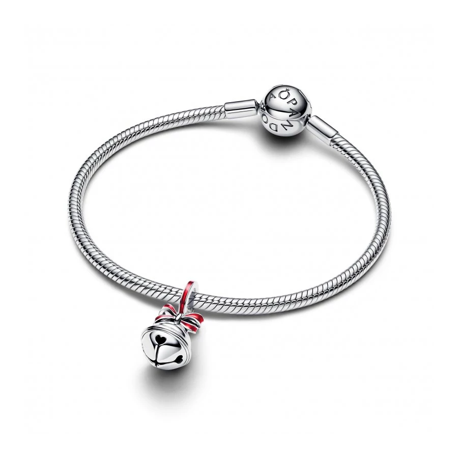 Cseng és bong az út! Ez a sterling ezüst karácsonyi csengő függő charm fényes piros tűzzománccal és szalaggal díszített felső résszel rendelkezik az ünnepi hangulatért. Viseld önmagában vagy halmozva az extra ünnepi csil