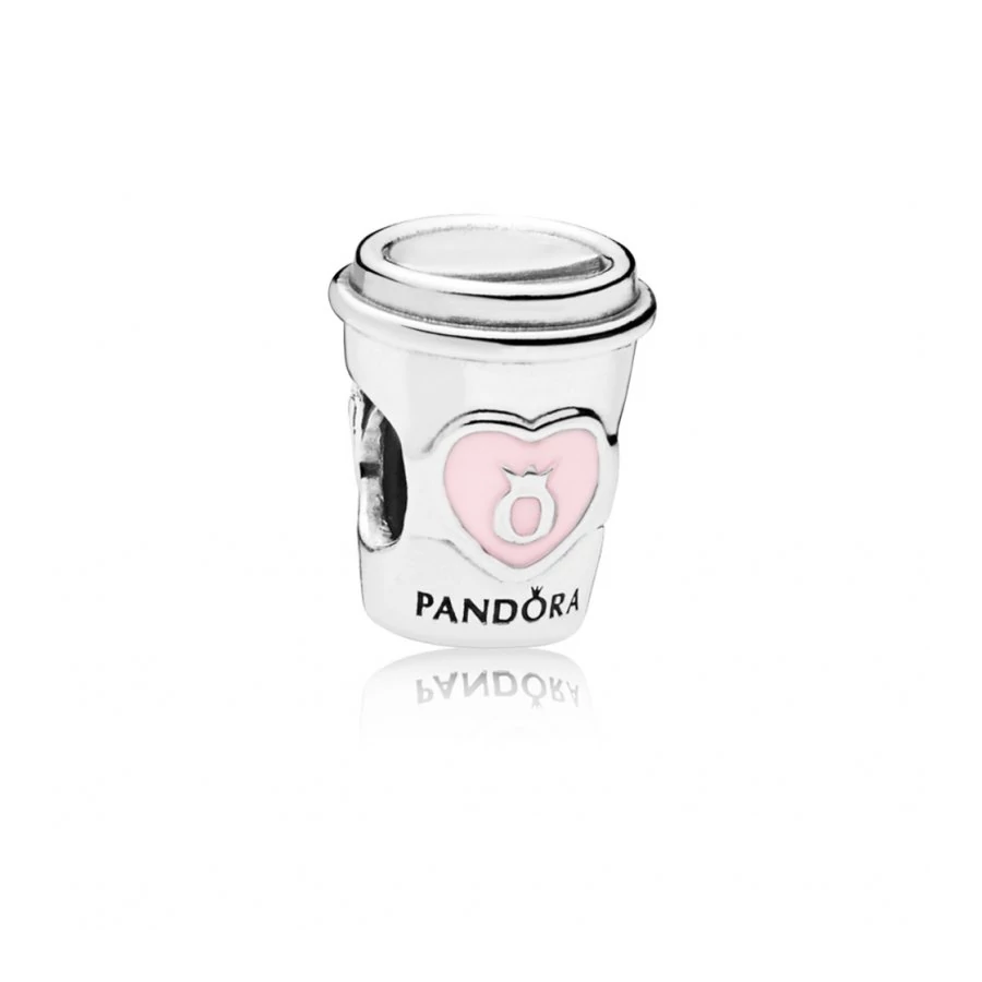 Sterling ezüst charm áttetsző rózsaszín tűzzománccal és "Take a break" gravírozással, a pihenés és feltöltődés szimbóluma.