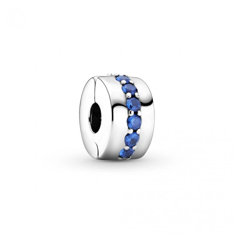 Klasszikus kerek klip, sterling ezüstből, csillogó kék kövekkel díszítve. Illeszd a Pandora Moments karkötőhöz, hogy színt és csillogást vigyél a stílusodba.