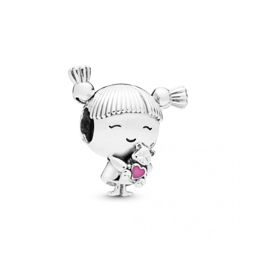 Sterling ezüst charm, áttetsző halvány rózsaszín tűzzománccal.