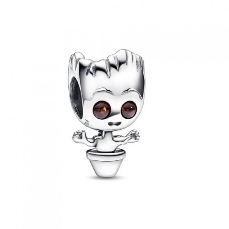 Üdvözöld Grootot, a szimbólumot a fejlődéshez! A sterling ezüst charm Grootot ábrázolja részletgazdag kidolgozással, barna mesterséges kristály szemeivel és vésett, kéregszerű részletekkel. A „I AM GROOT” felirat emlékeztet arra, hogy napról napra erősebbé válunk!
