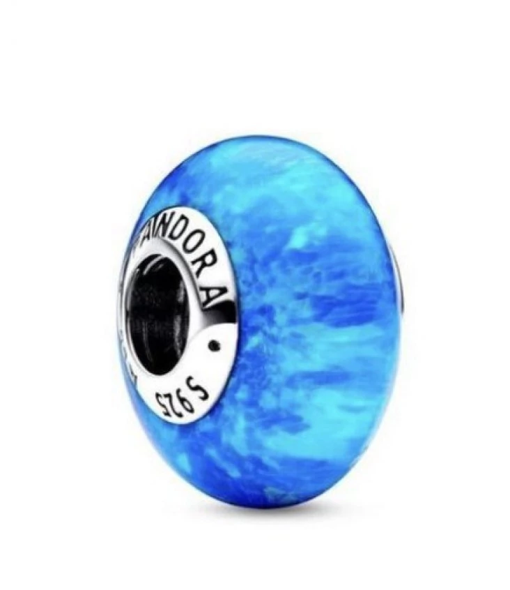 Ez a vibráló charm a mélykék vizek szépségét idézi meg. A sterling ezüst mag köré laboratóriumban előállított opálból készült csillámló réteg borul, amely Pandora logóval és egyedi mintázattal díszített. Mindegyik darab különleges, akárcsak Te!