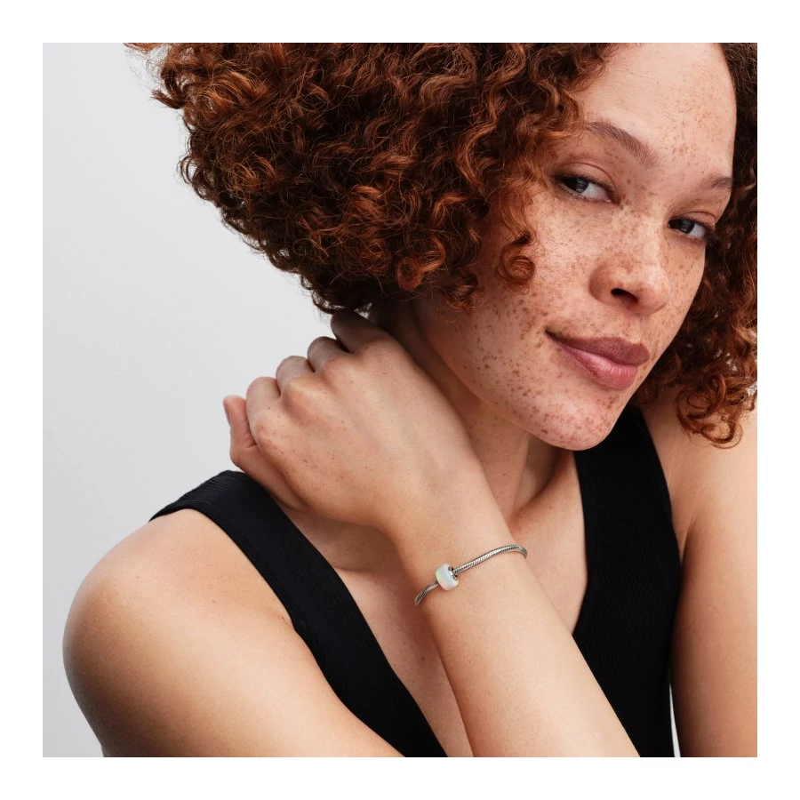 Ragyogj egészen a csillagokig. A sterling ezüstből és laboratóriumban előállított aurora opálból készült charm az egységet, az átalakulást és a kozmosz rejtélyét jelképezi. Viseld önmagában vagy halmozva a kozmikus hangu