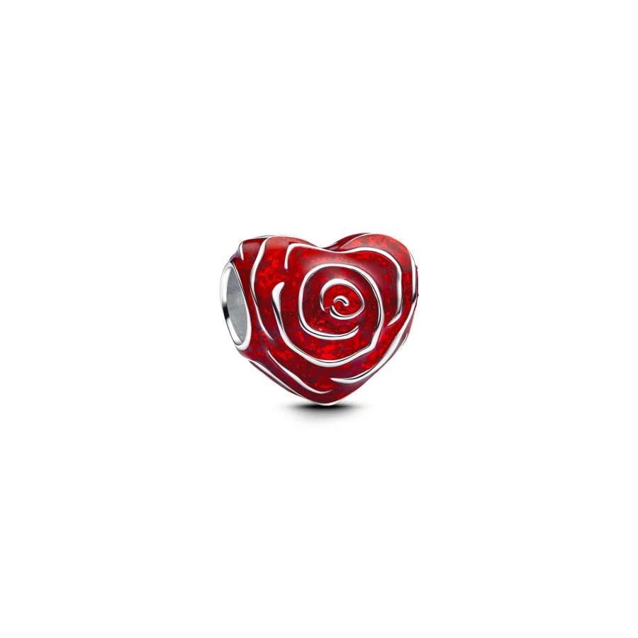 A szeretet univerzális szimbólumai által ihletett Rózsa szív charm sterling ezüstből készült és áttetsző piros tűzzománc díszíti a réteges sziromhatás elérése érdekében. Add hozzá a kollekciódhoz önmagad szeretetének szimbólumaként, vagy ajándékozd annak, aki minden napot Valentin-nappá tesz.