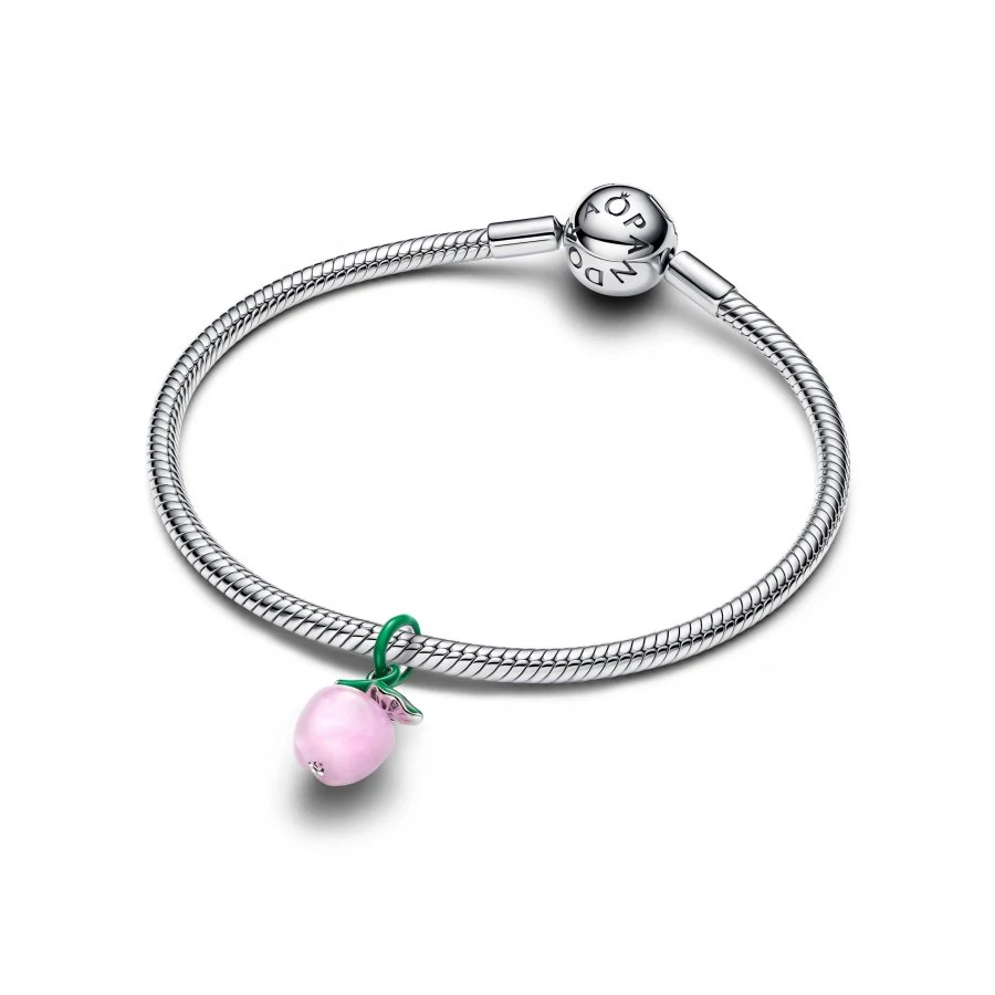 Menj almát szedni mindennap, rózsaszín muranói üveg charmunk segítségével! A sterling ezüstből készült, zöld és rózsaszín tűzzománc részletekkel díszített ékszer a természet által teremtett bölcsesség és szépség édes szimbóluma.