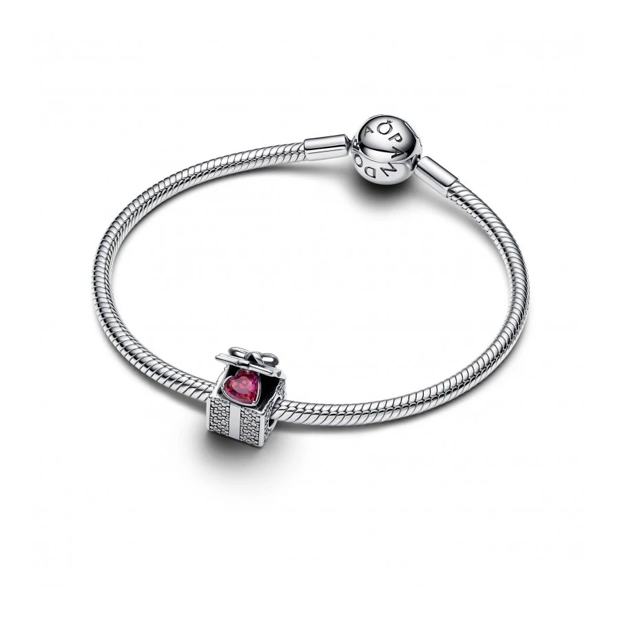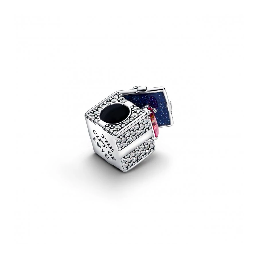 Ünnepeld az ajándékozás örömét ezzel a sterling ezüst charm-mal! A nyitott dobozt masni, szalag részletek és pavé díszítik, közepén egy vörösen ragyogó szív alakú kővel. A „THE GIFT OF L♥VE” gravírozott üzenet teszi igazán különlegessé ezt az ékszert, amely tökéletes karácsonyi meglepetés.