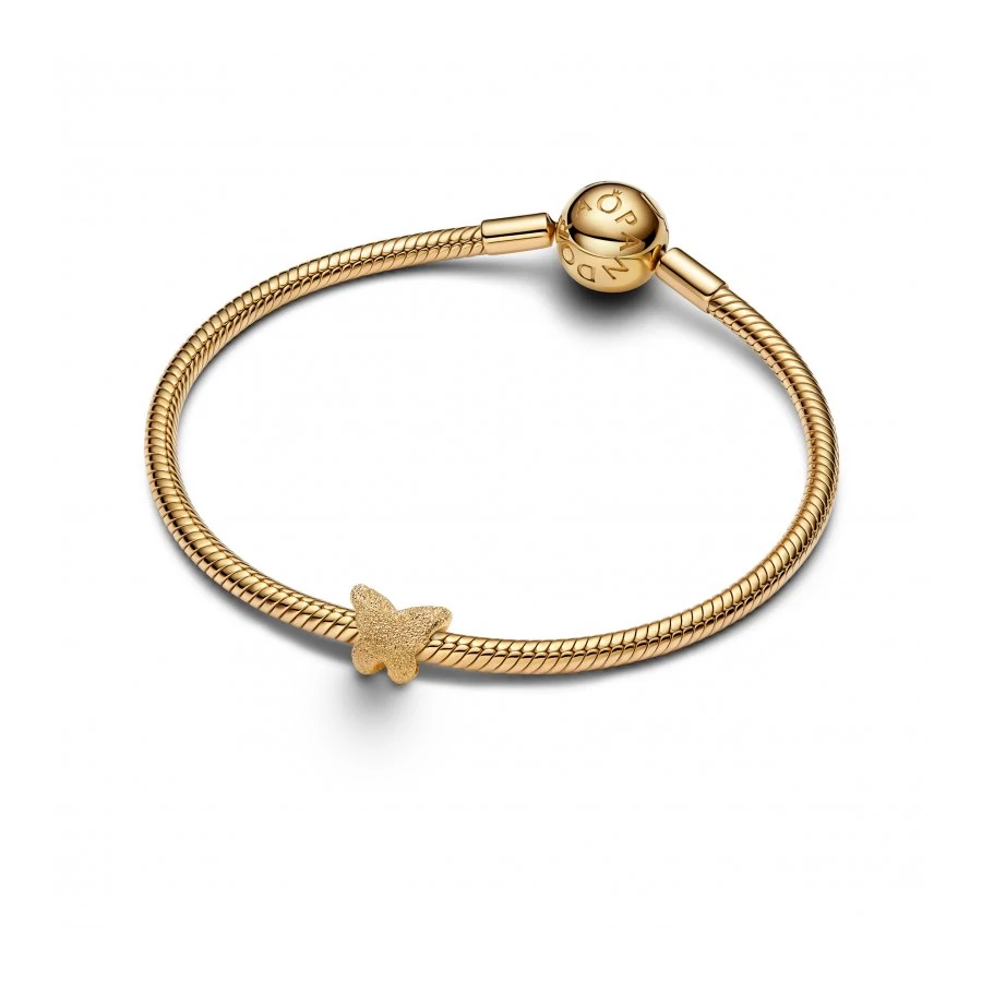 Mutasd meg egyéniségedet a Pandora Mini kollekció ékszereivel! 14 karátos arannyal futtatott pillangó charmunk ugyan kis méretű, de annál jelentőségteljesebb. A gyémántpontozással készült textúrával rendelkező ékszer készen áll arra, hogy felrepüljön halmozott összeállításodra.